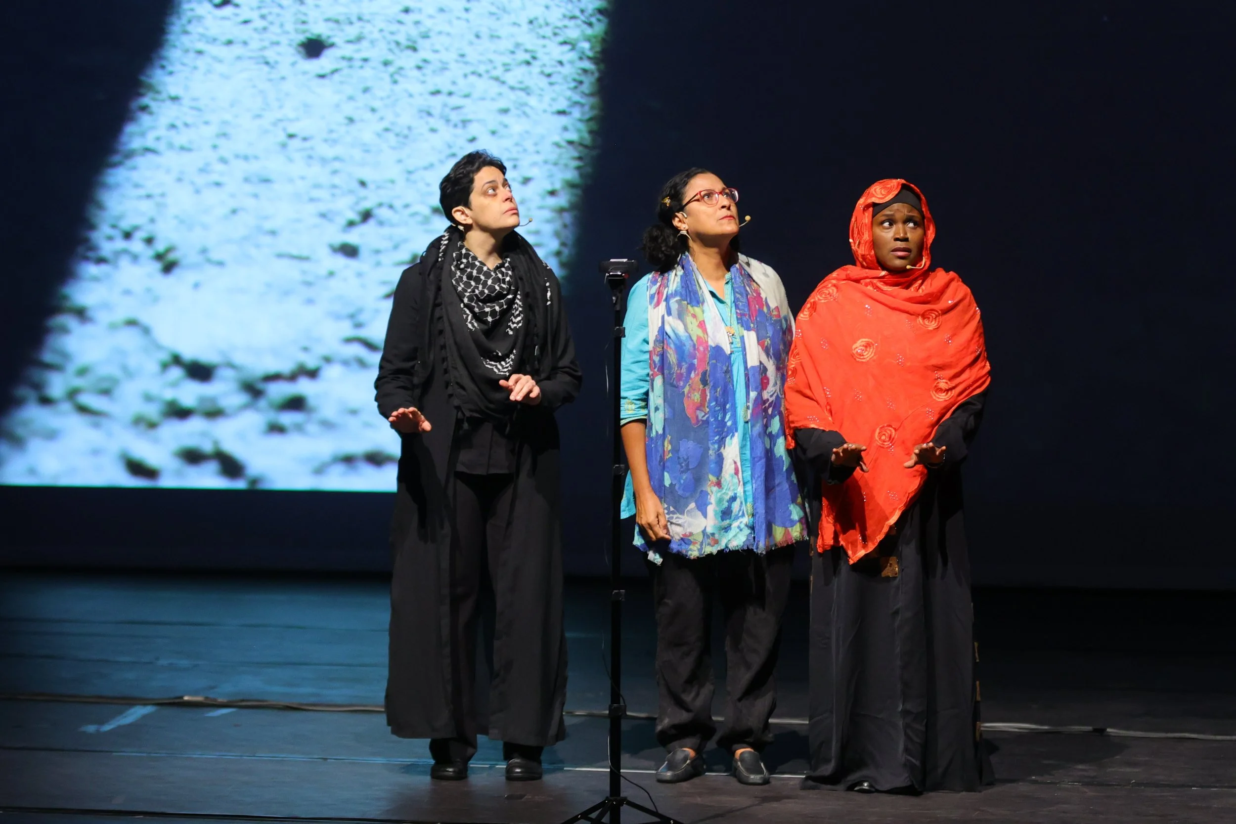 Photos above are from the workshop production of DRONE presented by the Arab American national Museum at Detroit Public Theatre, July 31-August 3, 2025. Featuring: Farah Afra, Lubana Al Quntar, Dora Arreola, Eylem Basaldi, Ian Bednarski, Anna De Luna, Zeyy Fawaz, Mel House, Roger Kashou, Will Keenan, Efe Osagie, Kathy Randels, Iman Saleh, Gerard Stropnicky, Zafer Tawil, Ashley Wilkerson, & Nejla Yatkin. Photos by Houssam Mchaimech.